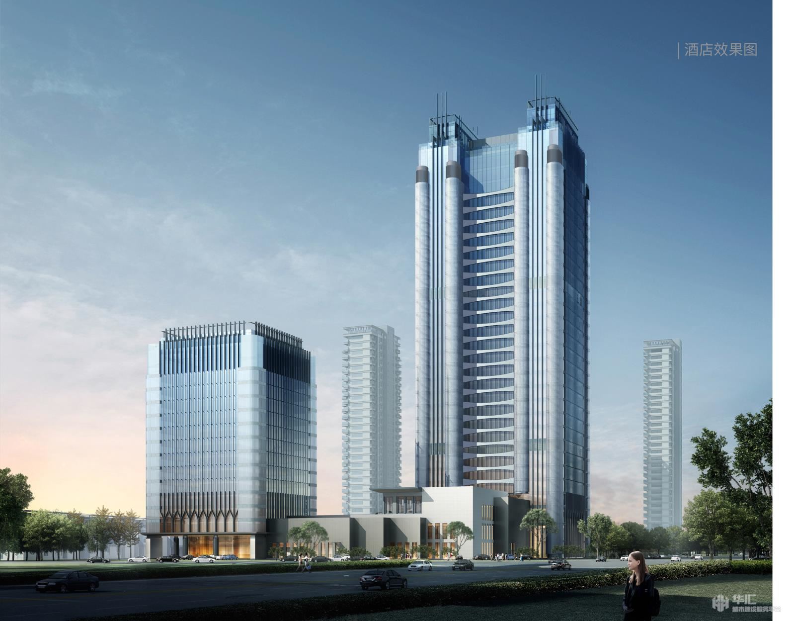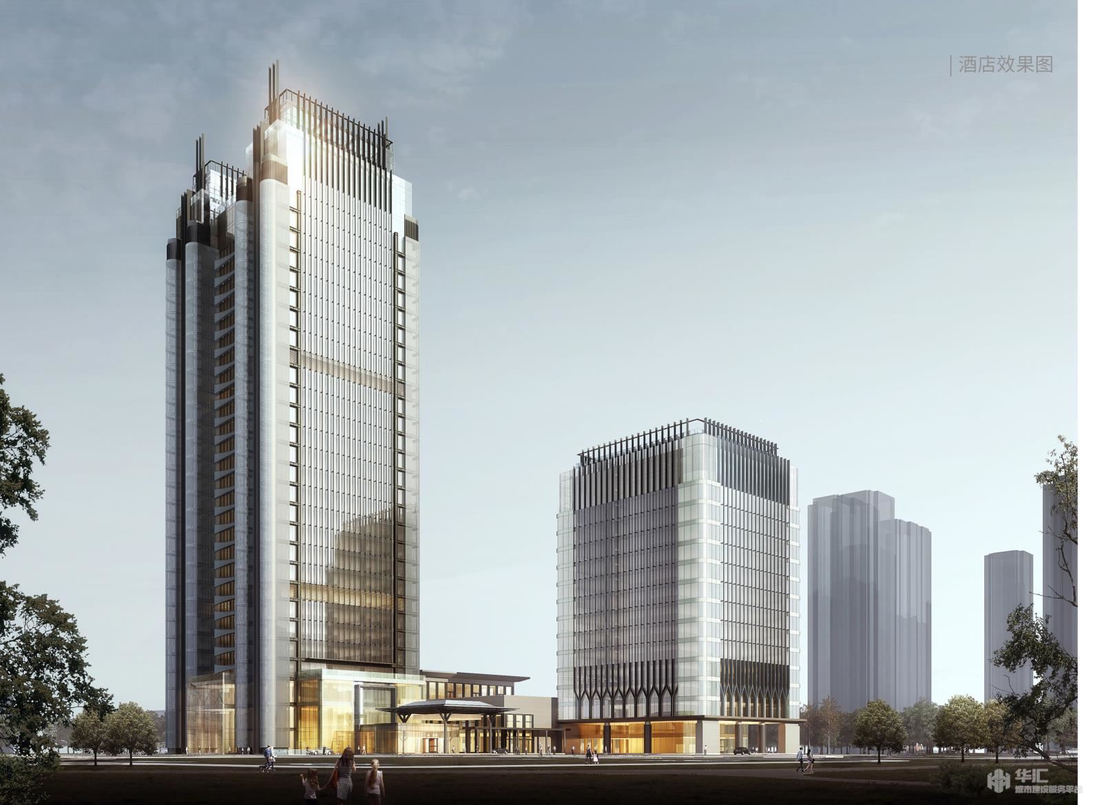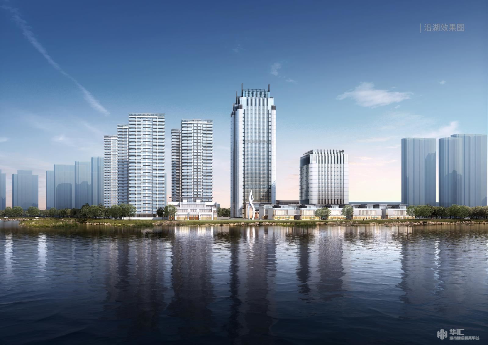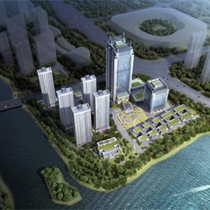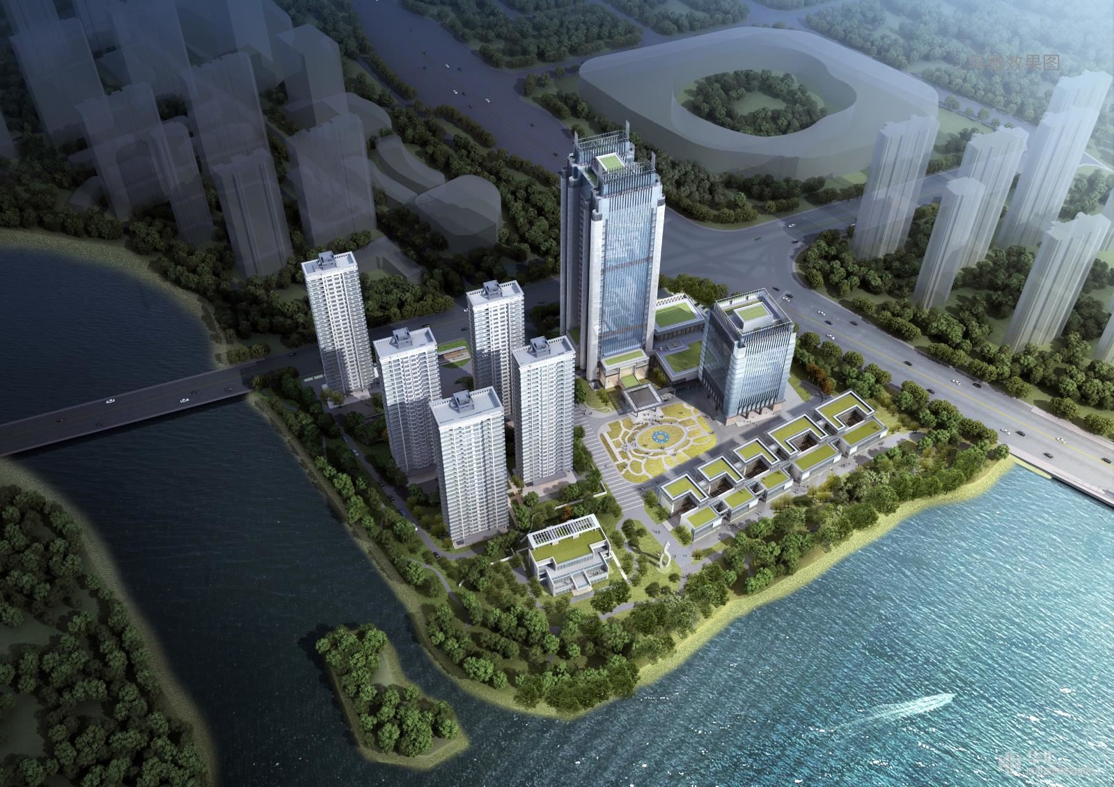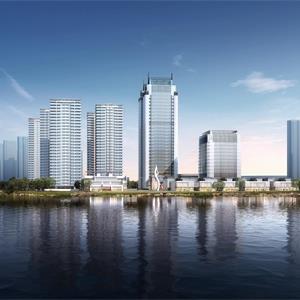 本项目基地位于镜湖新区,处绍兴核心区域的重要地段,项目建设面积19.1万平方米。利用南北与东西两条轴线将基地分为三个地块,项目东北侧为两栋酒店,一栋为超高层酒店、一栋为高层酒店,项目西北侧为住宅区,共5 栋点式高层住宅,南侧沿河为商业街区,三个区域中心拥有中央花园,每个分区均拥有较好的景观环境。