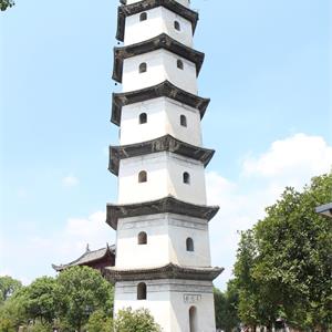 省级文保单位,为明代建筑,砖木结构,六面七级,塔身菱角牙子叠涩出檐,檐角悬系塔铃,塔身第一层南北辟券门,其它各层六面开窗。砖砌塔身,高约四十米。塔内夹壁有砖砌楼梯。