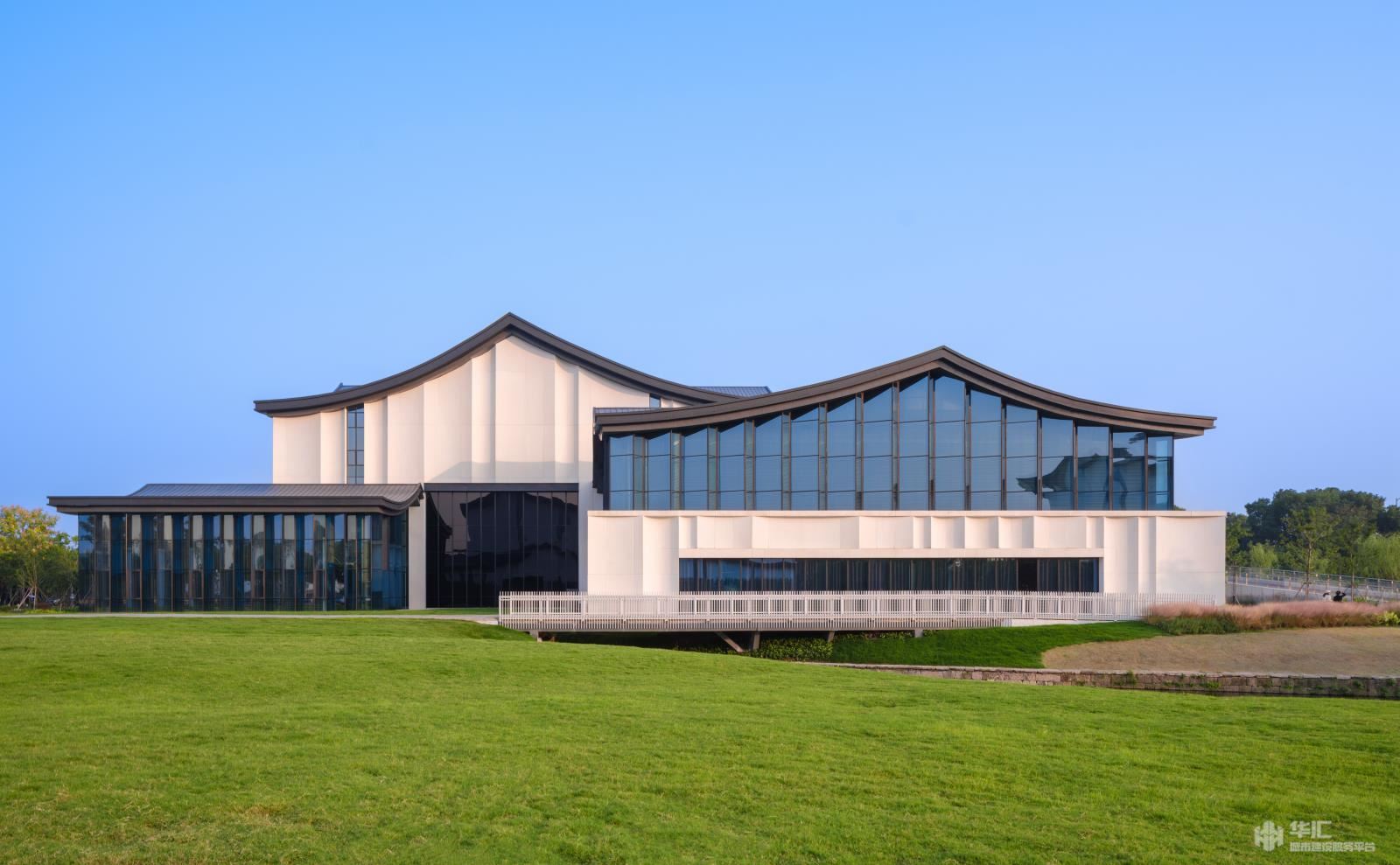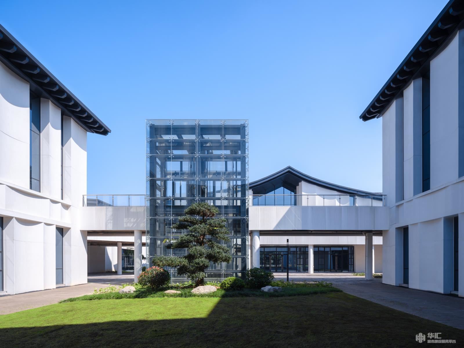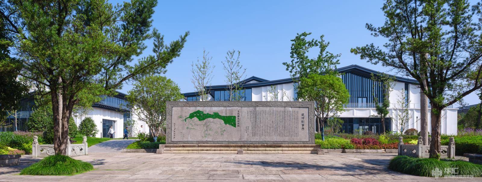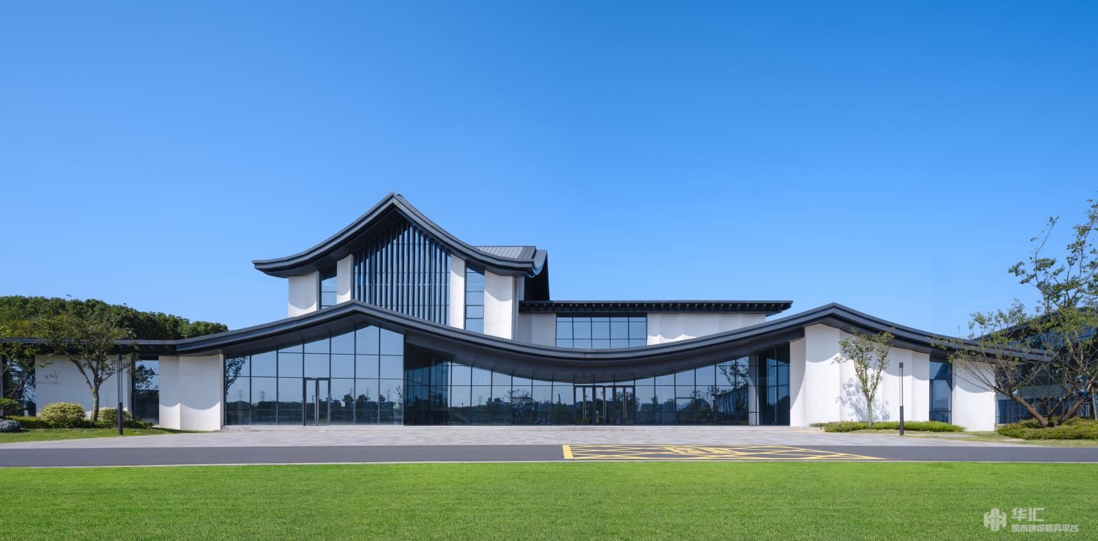 本项目由集团方案创作中心担纲设计。项目以“水波为笔,帆船为墨,水墨丹青,千年画卷”为设计理念,运用“古韵今作”手法,营造“烟雨江南,千帆竞过”的古运河艺术形象,隐喻大运河的繁华。整体采用现代建筑的处理手法,利用院落和建筑体量的错动,与周围景观环境相融合,形态古朴、灵动,凸显了水墨江南的白墙灰瓦、灵动轻巧。
