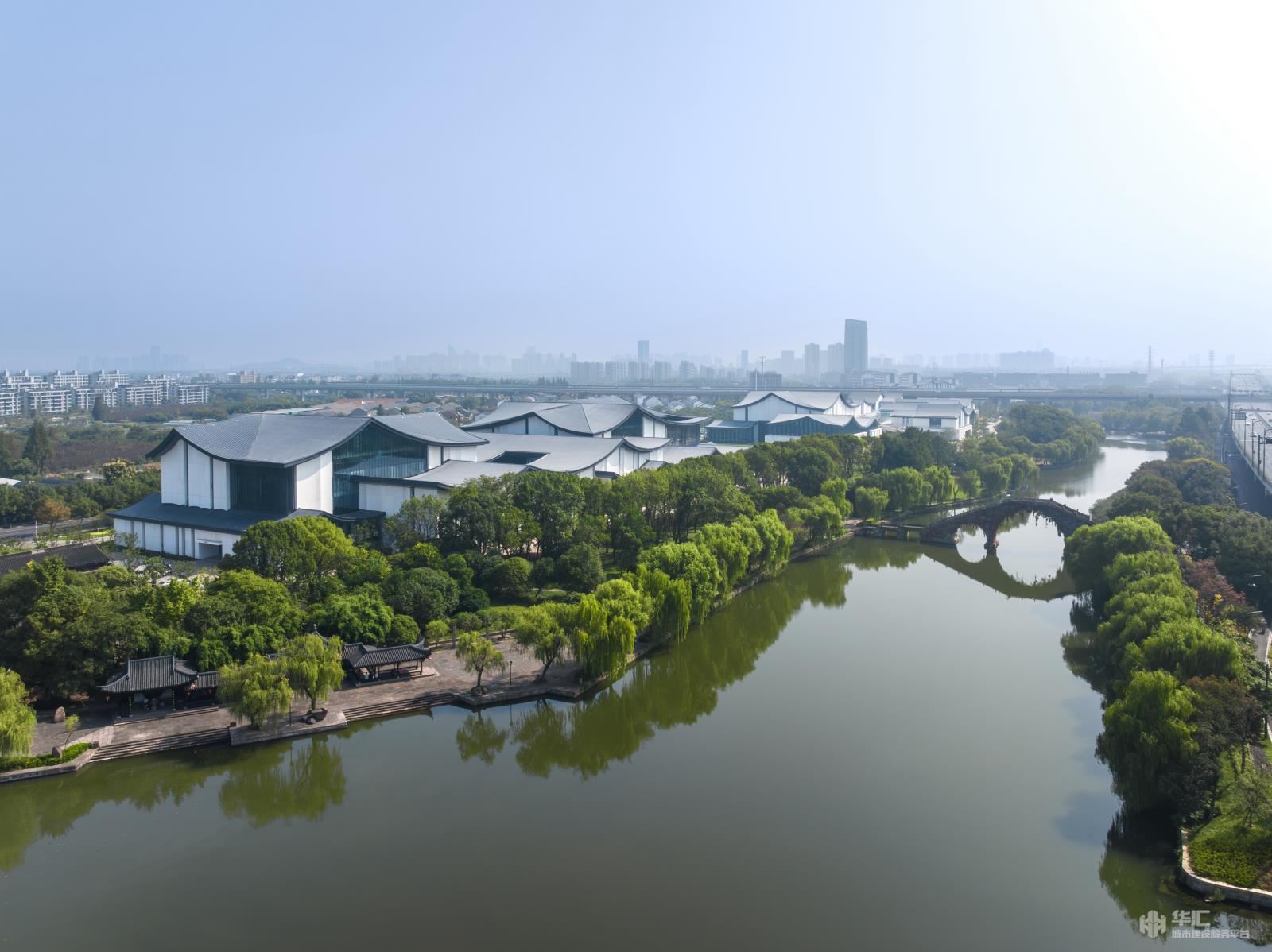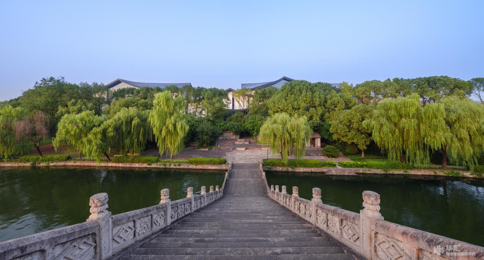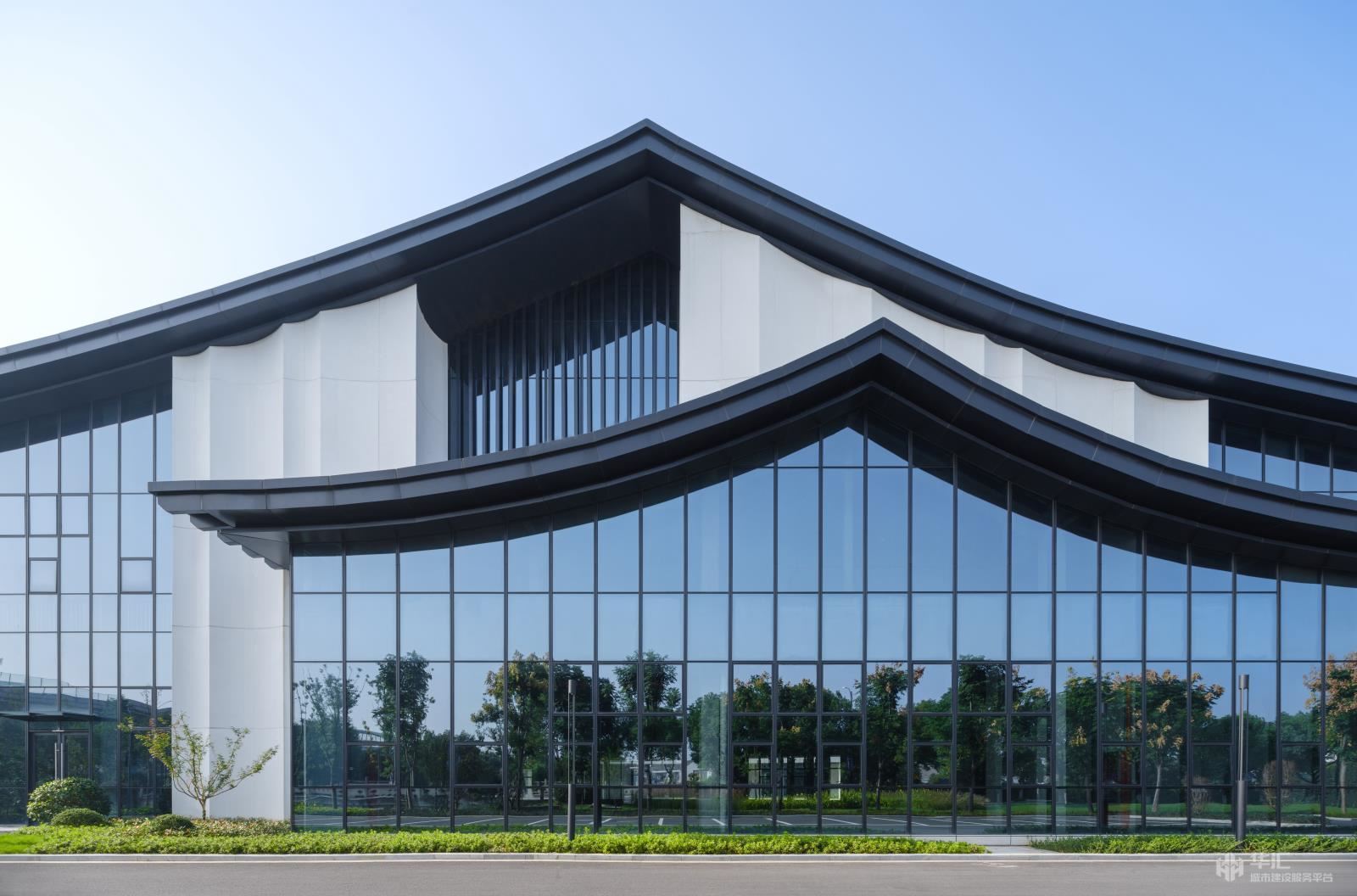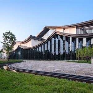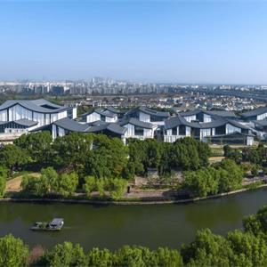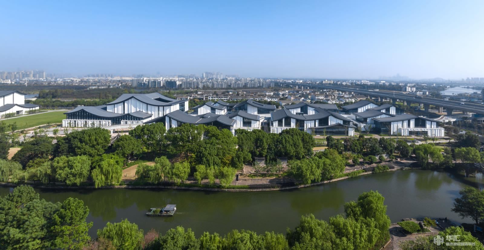 本项目由集团方案创作中心担纲设计。项目以“水波为笔,帆船为墨,水墨丹青,千年画卷”为设计理念,运用“古韵今作”手法,营造“烟雨江南,千帆竞过”的古运河艺术形象,隐喻大运河的繁华。整体采用现代建筑的处理手法,利用院落和建筑体量的错动,与周围景观环境相融合,形态古朴、灵动,凸显了水墨江南的白墙灰瓦、灵动轻巧。