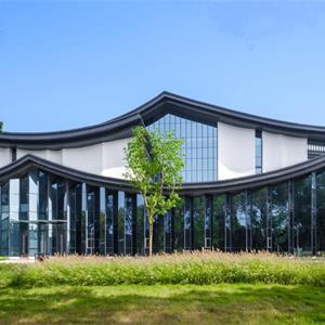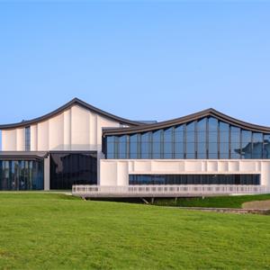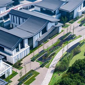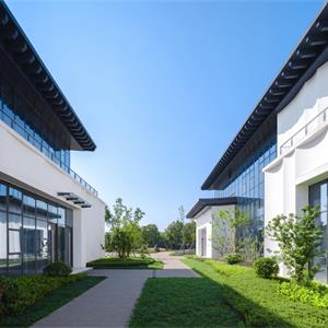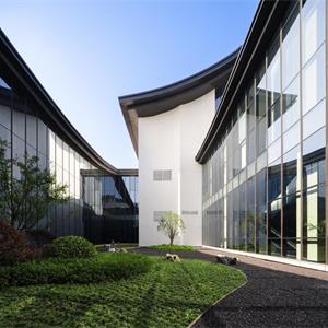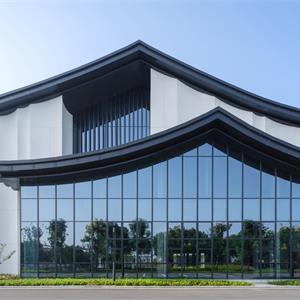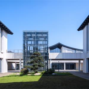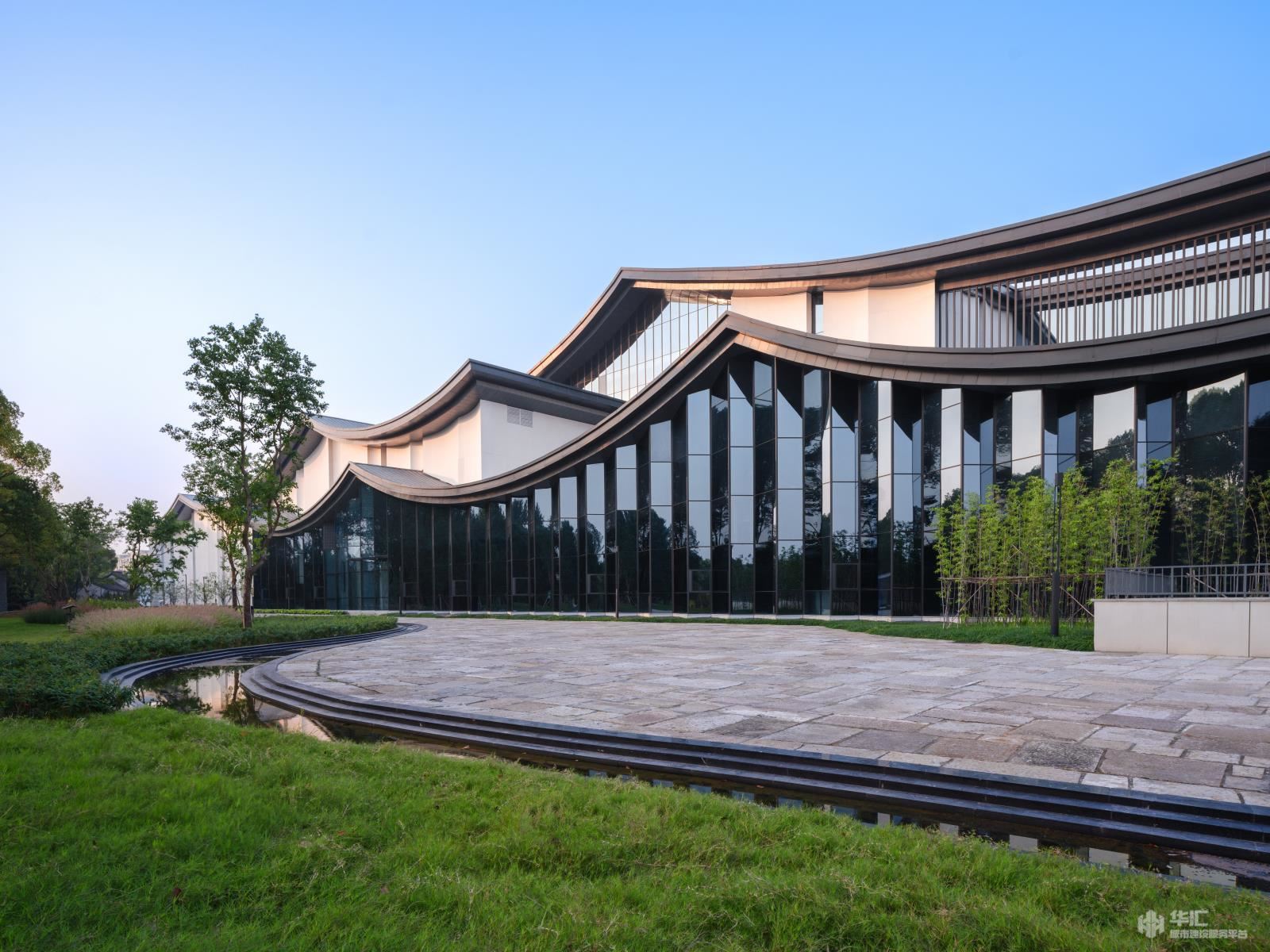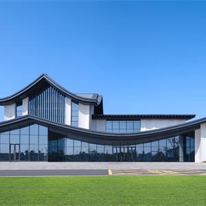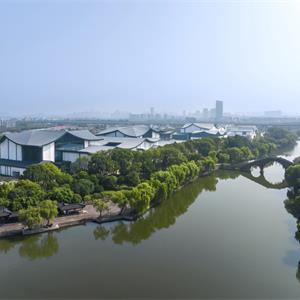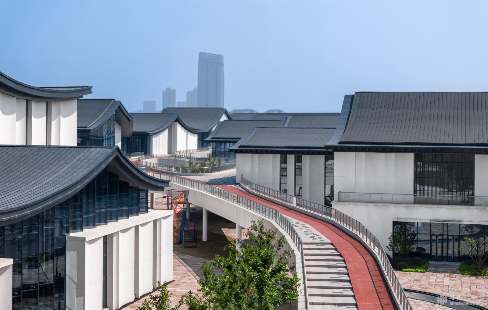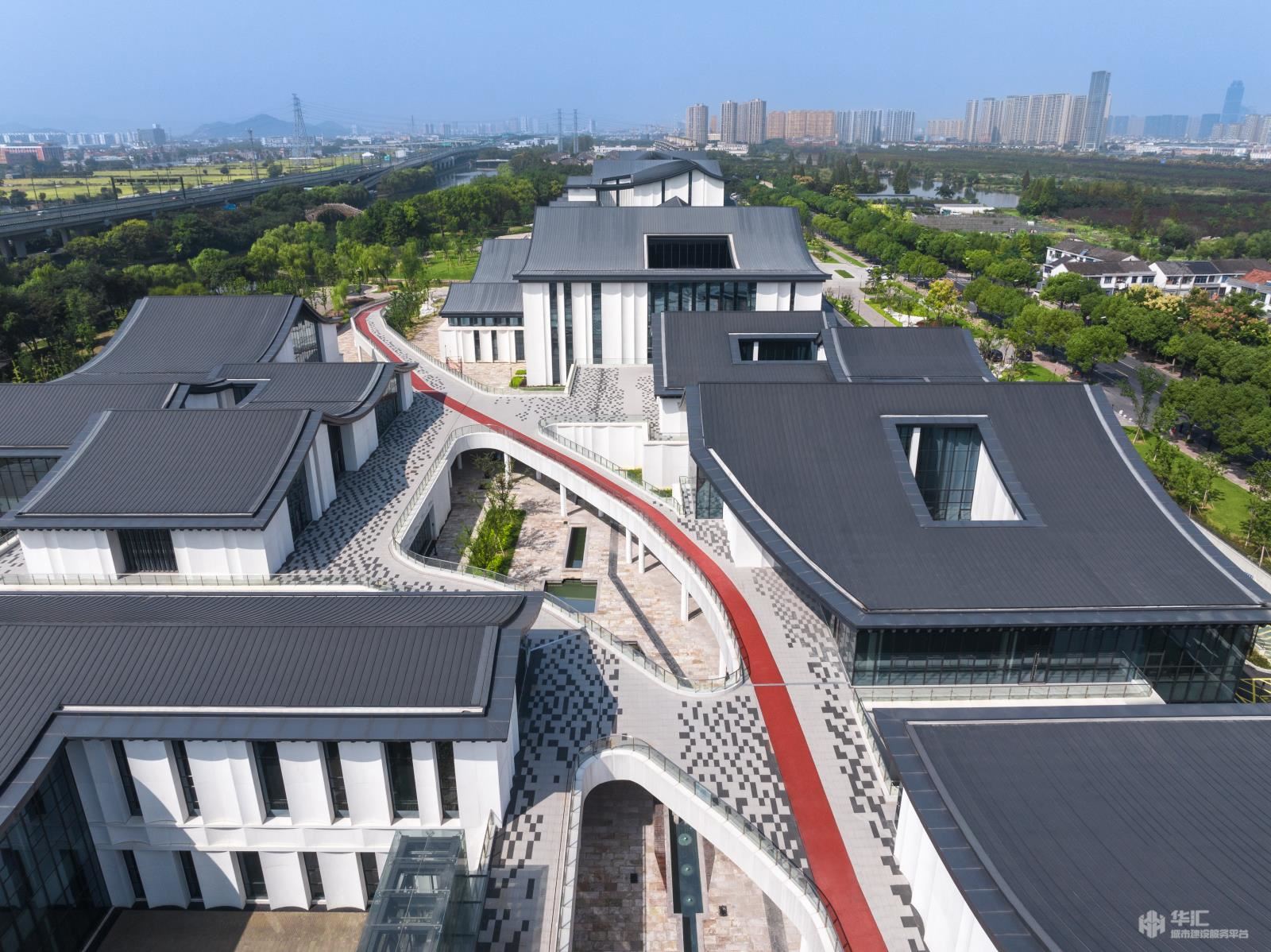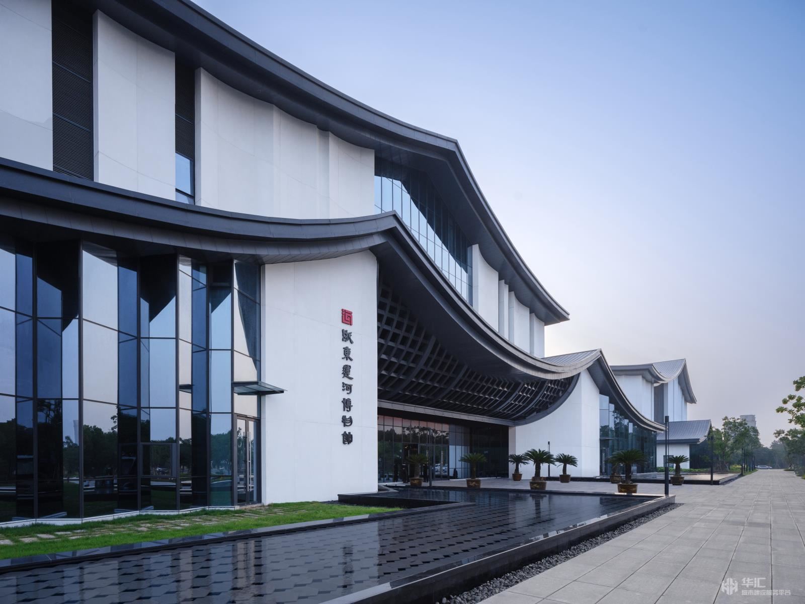 本项目由集团方案创作中心担纲设计。项目以“水波为笔,帆船为墨,水墨丹青,千年画卷”为设计理念,运用“古韵今作”手法,营造“烟雨江南,千帆竞过”的古运河艺术形象,隐喻大运河的繁华。整体采用现代建筑的处理手法,利用院落和建筑体量的错动,与周围景观环境相融合,形态古朴、灵动,凸显了水墨江南的白墙灰瓦、灵动轻巧。