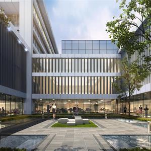 注重空间形体关系和建筑的精致大气感塑造,注重特色元素的提炼和运用。建筑简洁现代,立面以玻璃和铝板为主,局部采用实体墙面穿插,并通过多种材料表皮的使用,机理有机变化,协调统一。设计极具张力而且现代,简洁独特的造型必将使整个园区的视觉效果最大化。