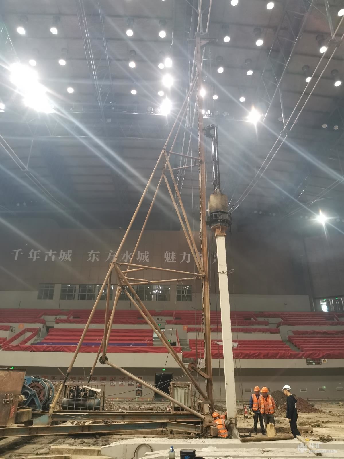 工程位于绍兴市奥体中心场馆体育会展馆内,为2022年亚运会配套项目,桩基施工位于体育场馆内部,单桩长度20米,单桩承载力290KN,场地出入口尺寸仅为4m×3m,对施工机械限制较大,原场地回填层较厚,地下地质情况复杂,我公司通过多个施工机械和施工方案的比选,克服重重困难,提前完成施工任务,获得业主的一致好评。