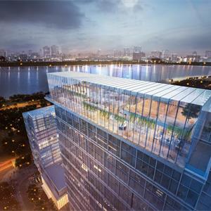 新生闻涛大厦项目用地南至滨文路,北至浙江大学教育学院附属学校,东至西浦路,西至滨浦路,总用地面积为42171㎡。建筑面积232592㎡;其中,地上建筑总面积147592㎡,地下建筑总面积85000㎡。项目投资额约9亿元。项目由商业、写字楼、商务酒店、精品酒店等内容构成商业综合体。项目的设计创意来源于一个大珠小珠落玉盘,滴水成江、汇流成海的故事,我们项目宛若是一个金盘,而步行街上的膜式结构遮阳则是一颗颗晶莹的玉珠,在步行街汇成潮起潮涌的人流、移动互联的世界,光速流动的财富,而这正契合了勇立潮头的钱塘江文化,彰显着独特韵味、别样精彩的国际“滨”。