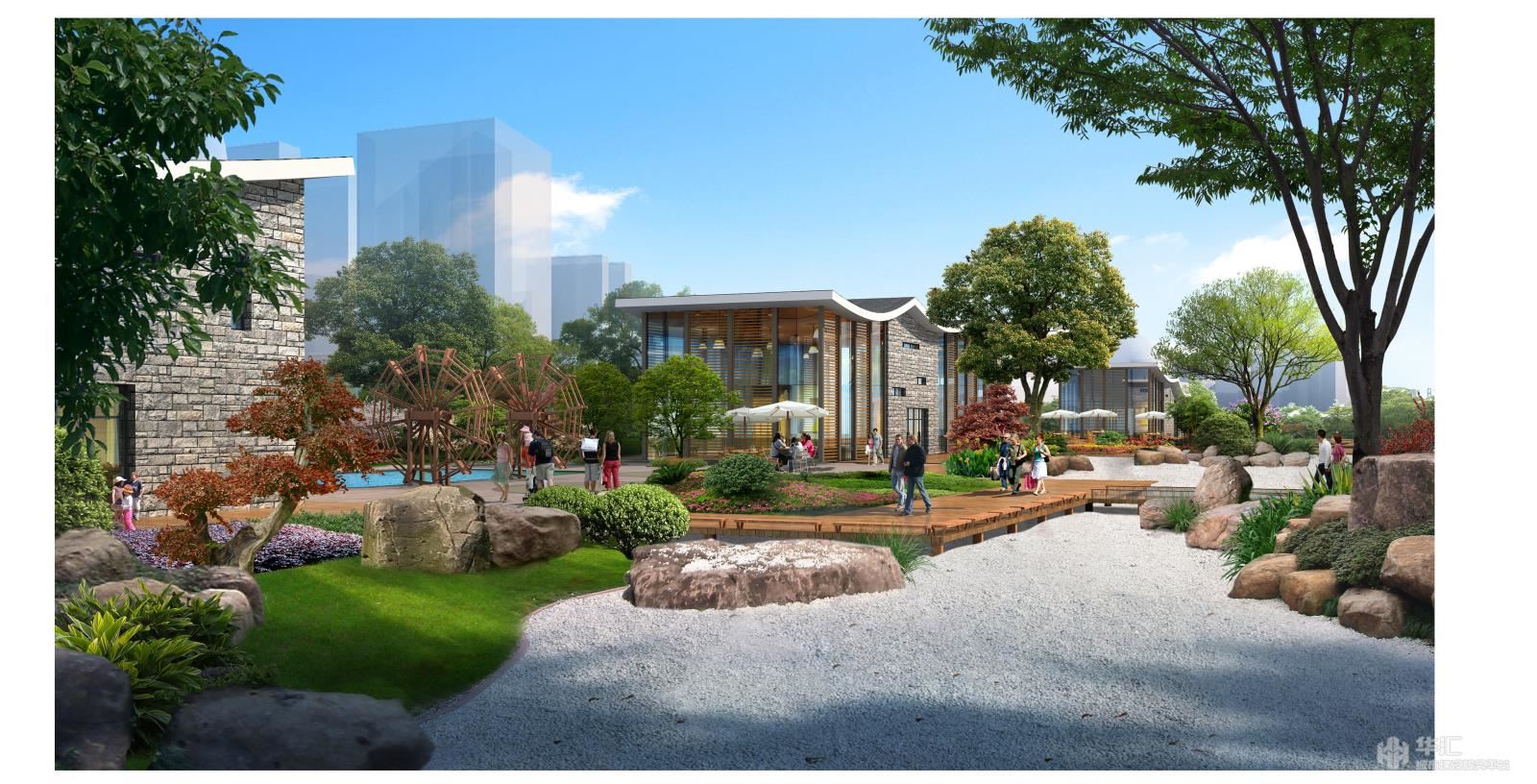 江城路与职教路范围内场地用地较为狭长,沿江滨西大道西北侧规划建筑以商业办公综合体为主要功能属性,为适应商务办公人群对休闲放松的需求,以“灵秀”为景观主题,,通过提取《富春山居图》中“岛”的元素,将原有泵房水源引入场地,分割狭长场地,形成岛状景观。设计小型休闲建筑散落布置“岛”上,引入茶室、咖啡、休闲餐饮等实用业态,形成风情景观街区,构建“岛居”景观风貌。