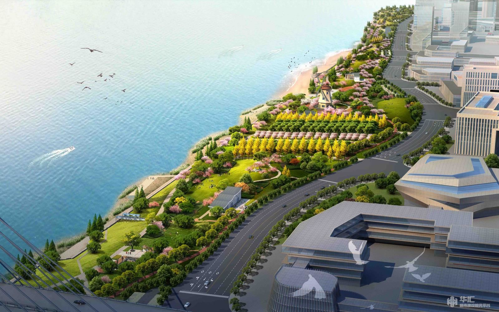 鹿山新区核心区功能由东向西,大致分为三种类型:文化行政区域,商务办公区域,文体休闲区域。本次设计通过融合《富春山居图》描绘意象,提取“山、水、林、岛”四大景观要素,通过现代景观设计手法,力图再现一幅立体化、现代化的“富春山居图”。