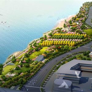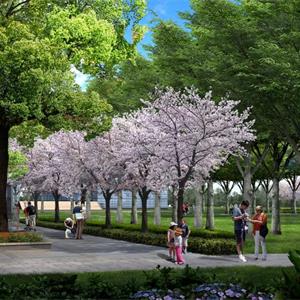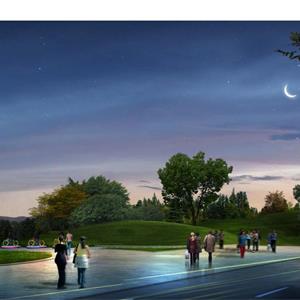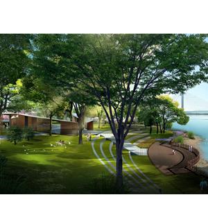 在鹿山大桥至江城路区域,以“山”为主要景观设计元素。现场为平整农田,设计结合未来文化行政中心功能用地,以“雄奇“为设计出发点,在中轴线两侧局部堆坡,营造微地形,模拟群山意向,使江滨西大道沿江一侧展现层层叠叠的山峦意象。在轴线上以层级递进的方式,通过丛林、广场、草坡等景观元素逐步向江边展开,穿插布置各类小建筑、亭台、廊架等,层级起伏,与两岸群山遥相呼应,凸显富春“山居”景观风貌。
