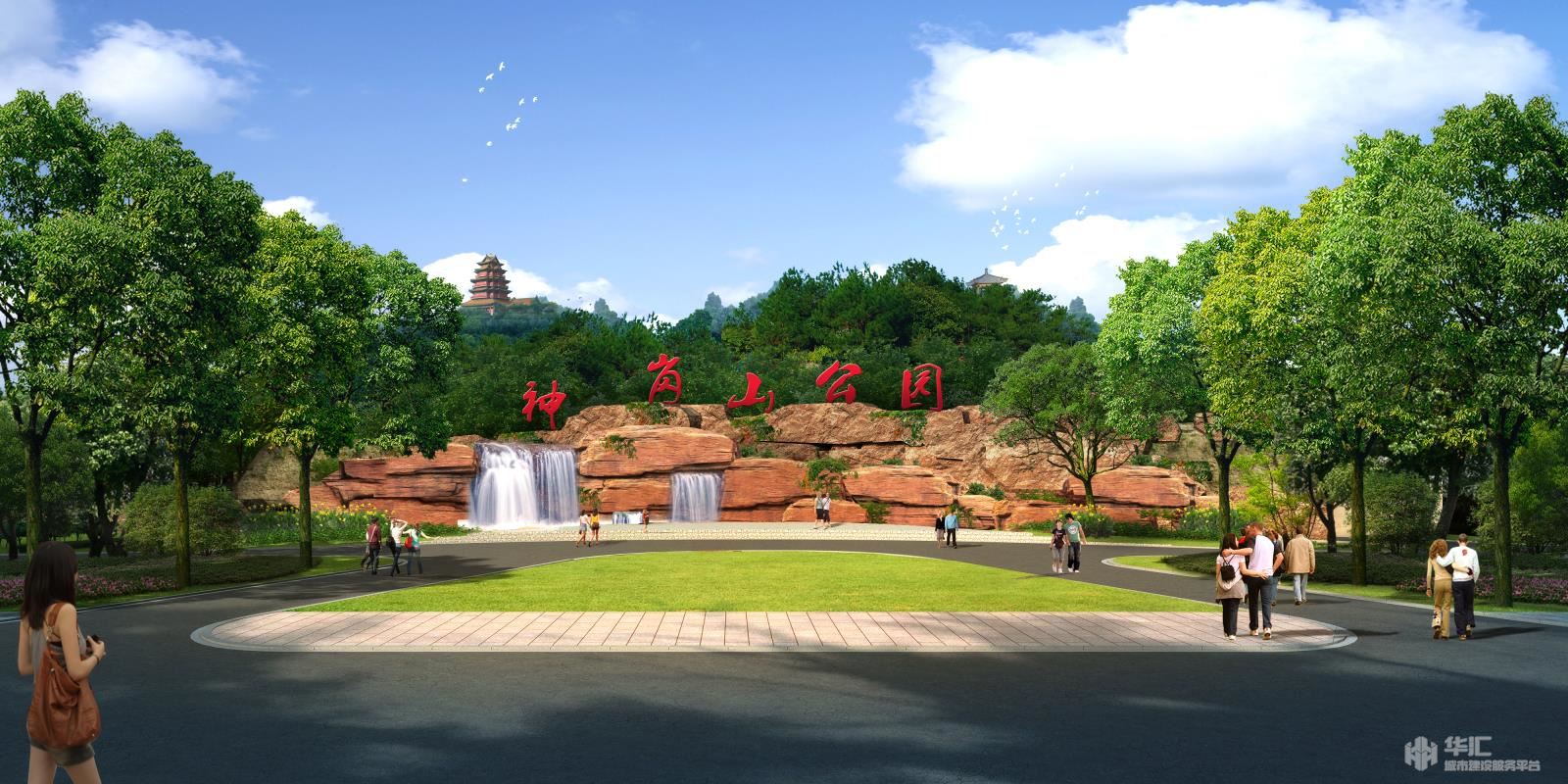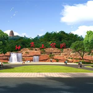 根据项目空间布局和周边现状情况,在沿江路设计公园主入口空间,利用现状场地高差设计塑石景墙,并结合入口和景区交通设计3处生态停车场。