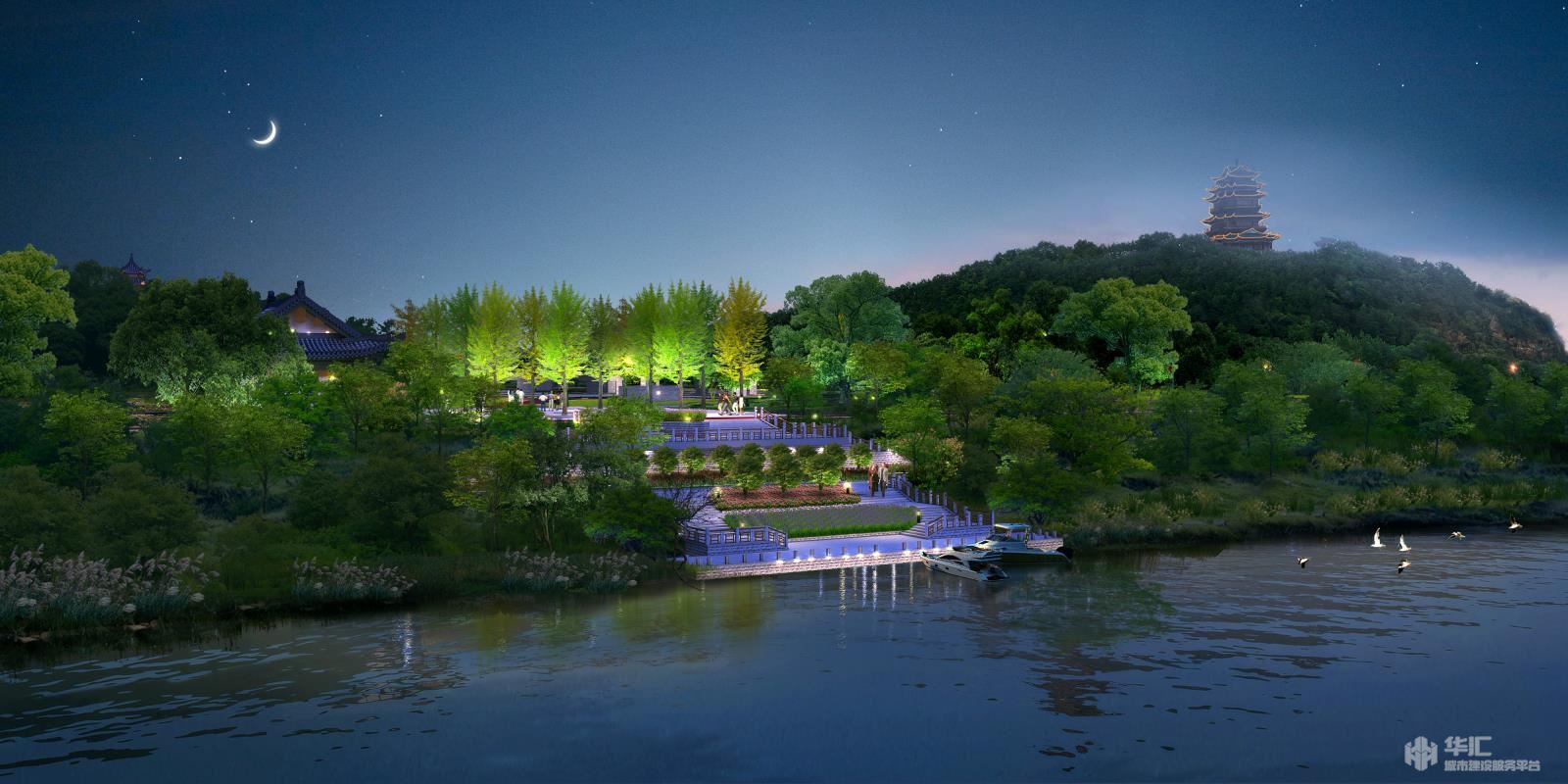 南侧靠近禾河,利用原有码头,规划一个亲水平台和游船码头,作为赣江水上游线的重要组成部分。对原有防空洞进行游步道串联,满足二次的开发利用。