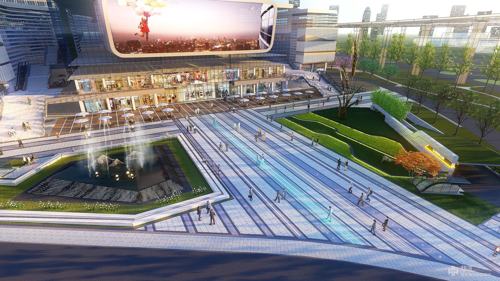 设计范围:用地红线范围内扣除商业、办公等用地面积之外的区域(约2.6万平方米);用地红线北侧30米高架防护绿化带(约1.2万平方米),商业屋顶绿化(2万平方米,含设备机房约1万平方米)。