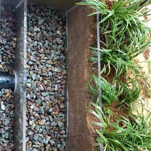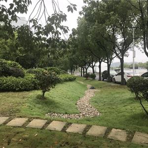 现状绿地的地势基本高于现状道路,合理控制竖向标高是本项目的额建设关键,部分建设完善的绿化不宜大面积开挖,故设置卵石槽、植草沟等灵便性大的设施实现绿地与道路的竖向衔接,同时也体现了工程细腻之处。