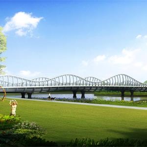 梅南路西延工程(31省道-环城西路)位于镜湖新区西侧,道路西起31省道,东至环城西路,全长约1.741km。按城市次干路,次干路计算行车速度为40 Km/h。全线跨越河流两处,需新建后塘湾桥为(2×18.5)+(18.5+3×30+18.5)预应力变截面连续梁桥、三首汇桥为28+32+40+32+28梁桥共两座桥梁。其中三首汇桥起终点桩号为K1+335.84~K1+500.16,桥梁全长为164.32m。跨径布置 (28+32+40+32+28)m,为变截面预应力混凝土连续箱梁。桥梁横向桥面整幅设计,宽30m(不含装饰构造突出部分)。桥墩采用哑铃形柱式墩,桥台采用壁式台,基础采用承台接群桩基础。桥梁梁底标高按内河准七级航道控制。