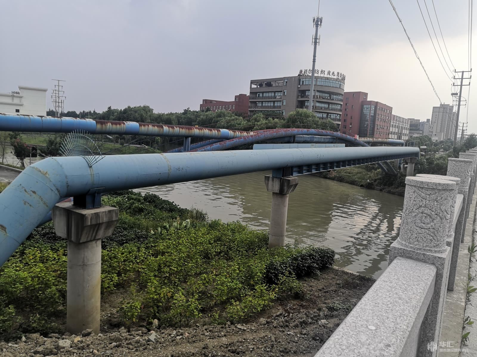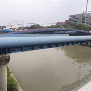 给水管过河采用钢管管桥,本次工程设计多处河道穿越,其中绵长港管桥管径DN1200中间跨长达50米,设计过程中采用迈达斯等计算软件建模计算并进行了充分的受力分析,多次校核,确保了管桥稳定性,单跨50米的跨径目前为海宁市管桥最大跨径,同样也创下了我公司自主设计给水管桥最大跨径记录。