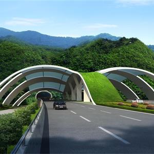 环山北路作为温州龙湾区东西走向的城市主干路,道路标准宽度为50米。项目重点为大罗山隧道工程,是全国首座陆地上的双层隧道,大罗山隧道最大埋深170m。自隧道进口~中部~隧道出口的线间距分别为34.8m~45.8m~45.8m,左右隧道平均全长为1395米,隧道衬砌内轮廓采用四心圆卵形曲边墙结构,为上下双层结构隧道,衬砌内轮廓高11.19m,宽14.52m。