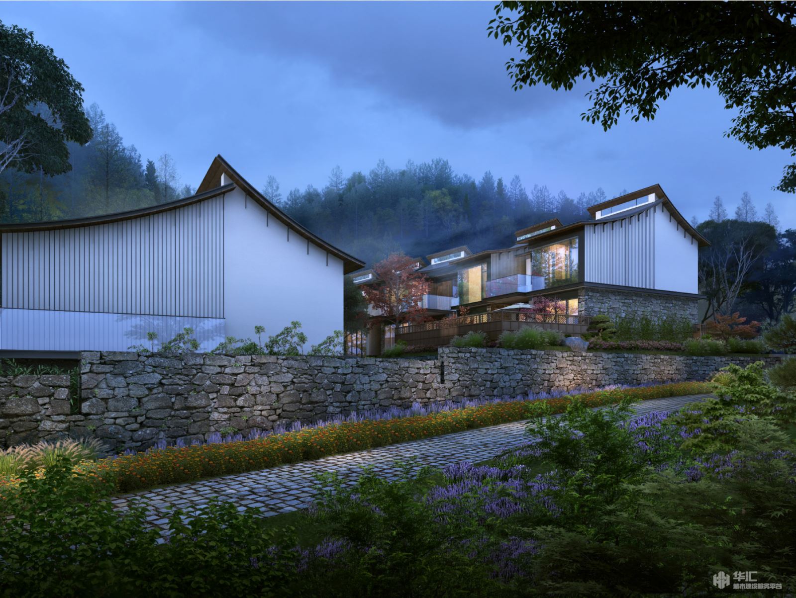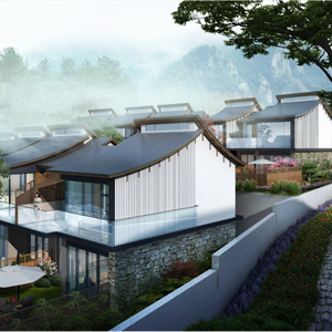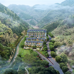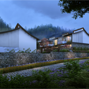 场地原为知青点,设计将酒店高端区、中端区分离,结合室外庭院、婚宴场地融为一体。