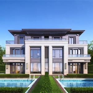 项目位于浙江省玉环市,基地基地北靠湫涛路,东临柚园路,西侧和南侧为大湫河,总用地面积38912㎡,总建筑占地面积为9728㎡,总建筑面积93650㎡,建设22栋双拼排屋、6栋高层住宅,定位玉环高端住宅小区。