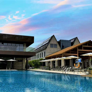 半山伴水渡假村是由万汇集团全资独立开发,总规划面积717公顷,总投资壹亿伍仟万美金。集住宿、 餐饮、拓展、商务会议、养生、渡假旅游于一体的综合型旅游渡假区。坐落于风景秀美的海曙区龙观乡,山清水秀、空气清新,远离城市的喧嚣和吵闹。景区内酒店依山而建、依水而居,实现自然与景观的完美结合。