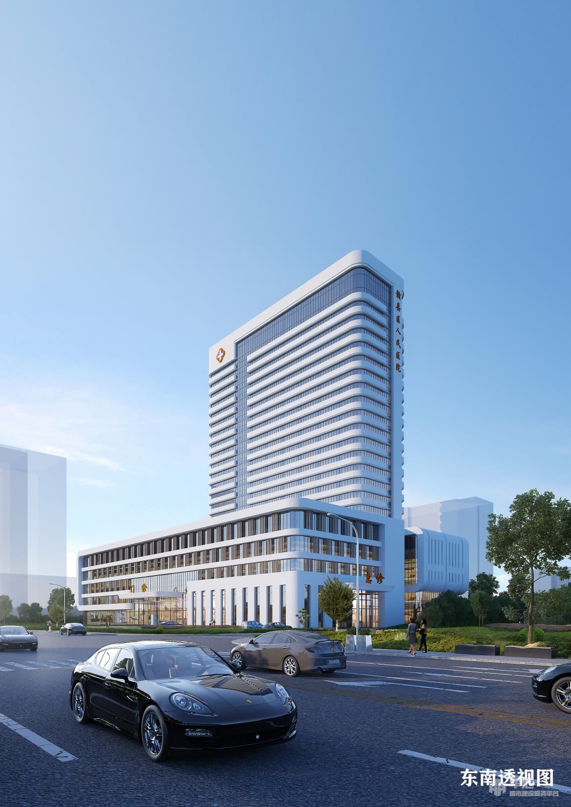 该项目选址于赣州市赣县区城南大道,北侧为已建赣县区人民医院住院大楼,南侧与梅林古镇商业广场相隔城南大道,西侧为赣县区商会大厦,东侧为规划空地;交通便利,场地平整,地块呈近正方形状;总用地面积约为29.013亩,约为19342.099平方米,因用地面积相对较小,而且建筑高度受到城市规划的限制,已没有进一步发展空间。根据二级甲等综合医院和现代医院建设标准,目前医院科室设置已远远滞后。赣州市赣县区人民医院作为一家服务于该区66万多人口及周边地区的综合性二级甲等医院,现有条件已不能满足广大群众的迫切需求和业务发展需求,急需扩大该院的用地面积及各项医疗指标,现实行一次性规划设计及实施。项目满足日门诊量约3000人次,990床的病房以及相应功能,项目实施后最终达到一所现代化的,集医疗、科研、教学于一体的二级甲等综合性医院。