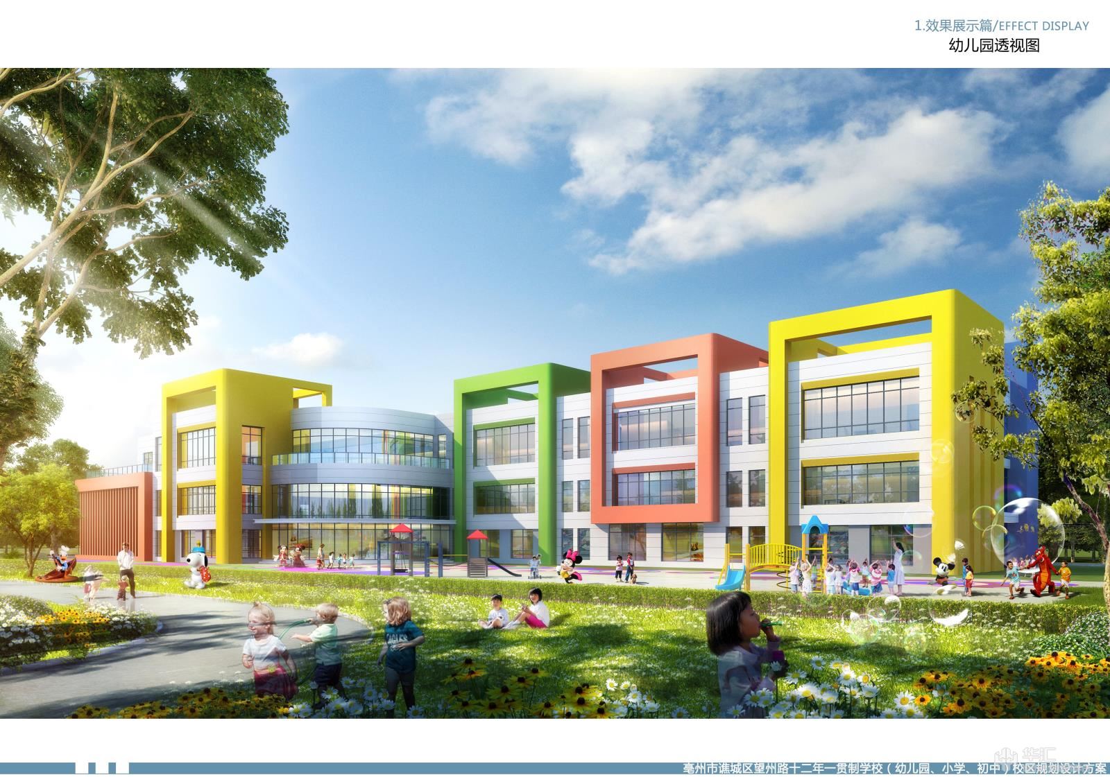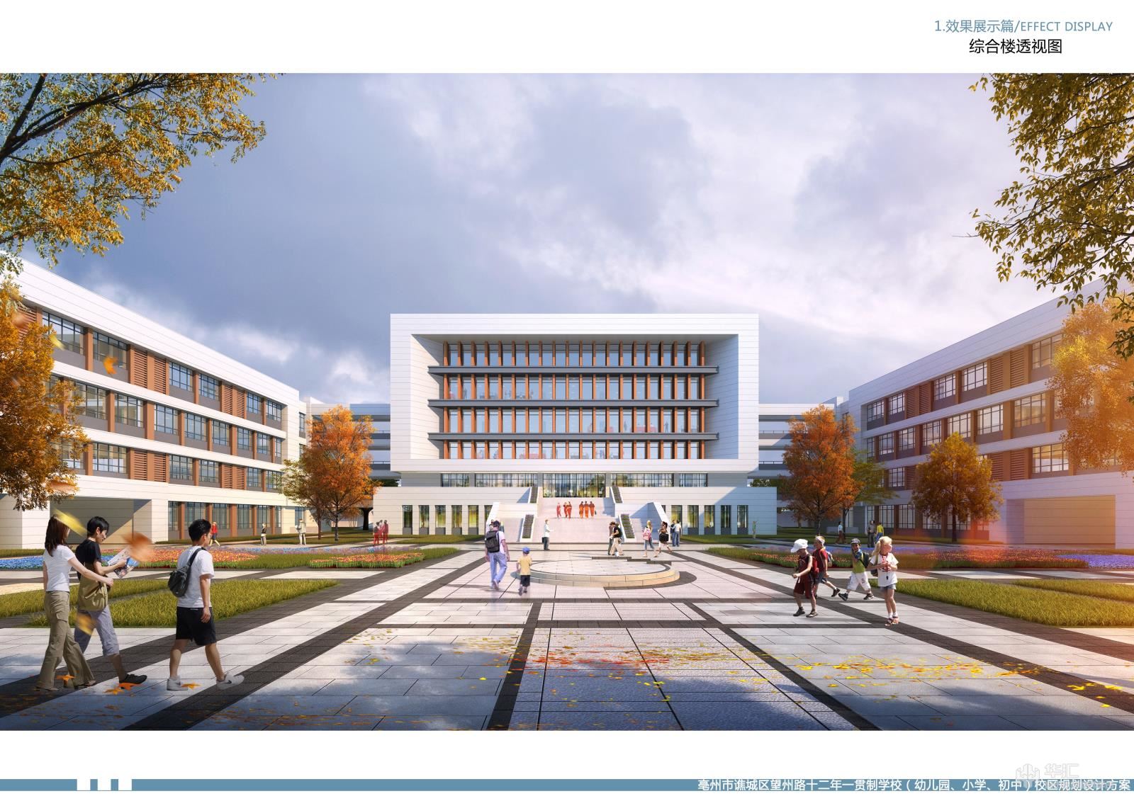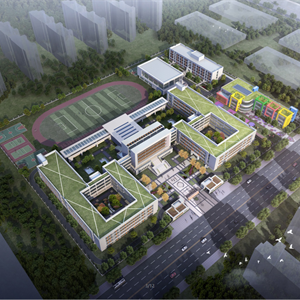 此校区为十二年一贯制学校,其中幼儿园独立设计,小学、初中合在一起设计。该校区的建设必将活跃该地区的周边文化氛围,为其周边的人文环境的塑造起到积极作用。校区的布局结构为一心三翼,一中心为以图书综合楼为园区核心,三翼为:教学区、实验区、生活区。