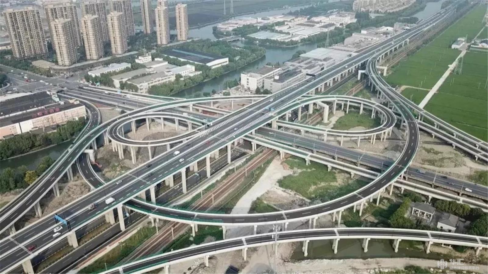 104国道与镜水路互交叉处考虑萧甬铁路、杭甬运河等复杂现场条件,该处采用环形匝道、直连式、半直连式匝道相结合的复合式枢纽型互通立交形式。立交规模大,功能齐全,桥型结构采用了现浇箱梁、钢混结合梁等形式。