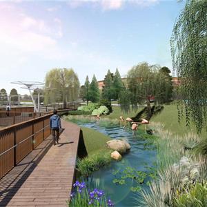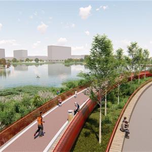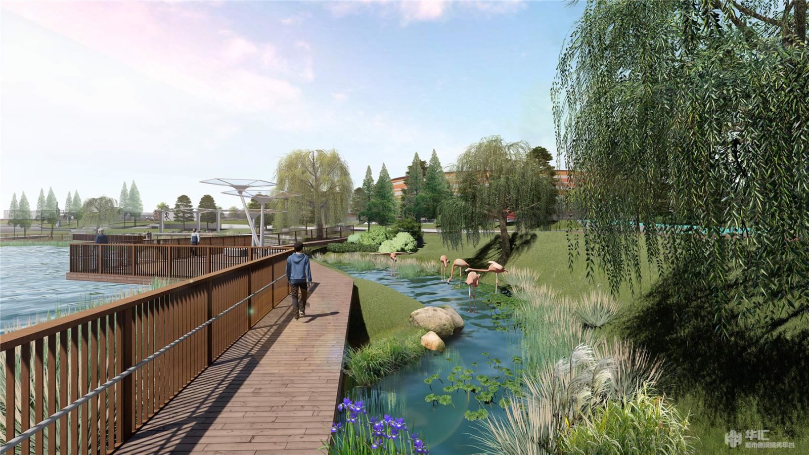 北侧保育湿地片:以湿地保育和水体净化、沉淀为主要功能,是水体生境构建的重要区域。设有小型湿地博物馆,片区公园以湿地教育科普展示为主题。