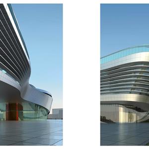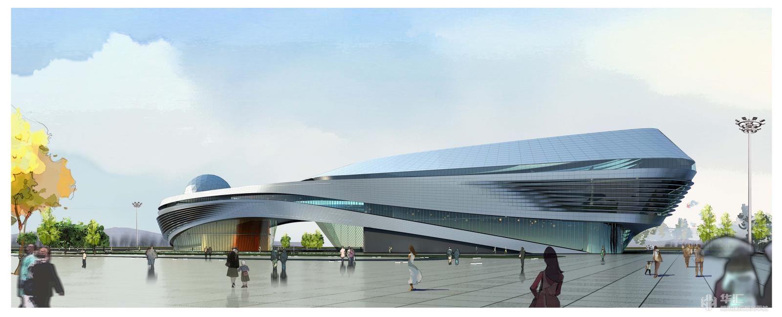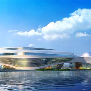 绍兴市科技管新馆地下一层,地上6层,主要包括科技馆展厅和儿童乐园、球幕影院两大功能块,两者之间首层脱开,二层以上用7榀钢桁架(40~60m不等跨度)连接成为一个整体,结构在相应部位分别采用了钢桁架、网壳结构、管桁架结构、型钢混凝土结构、钢筋混凝土框架结构5种结构形式来实现建筑造型及功能的要求,具备大悬挑、大跨度、斜柱、混合结构等结构特点。