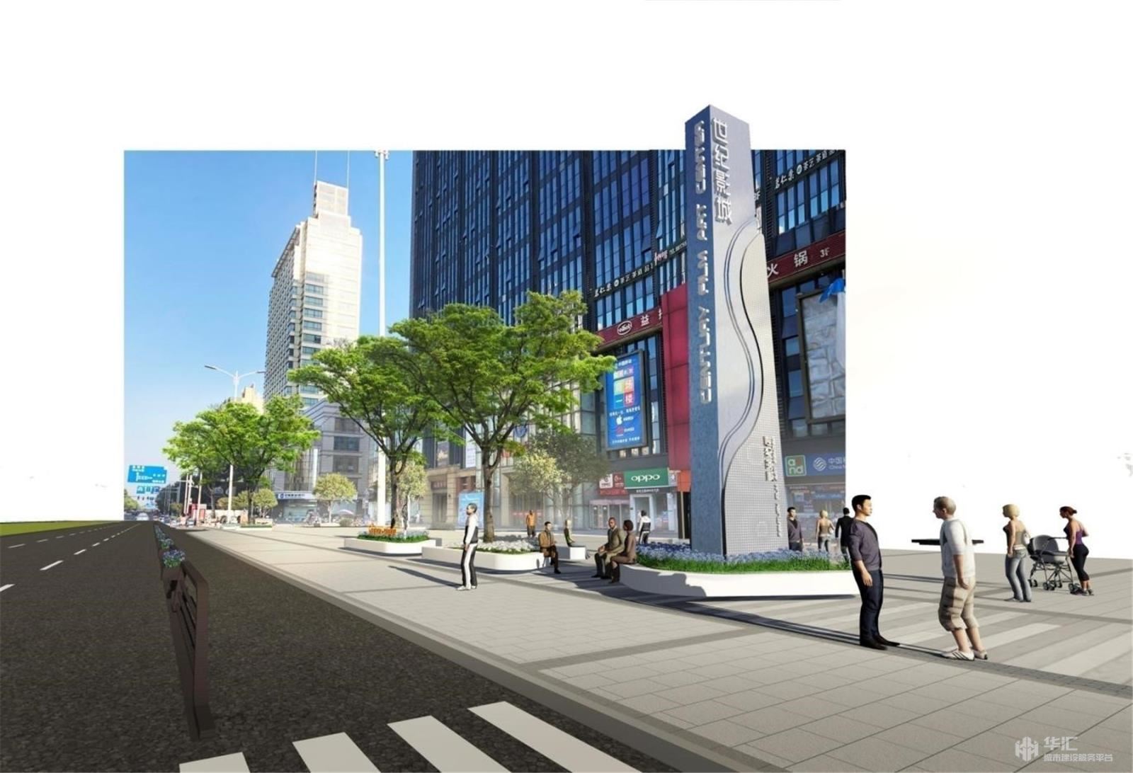 9)对世纪街的建筑立面店招进行统一设计。