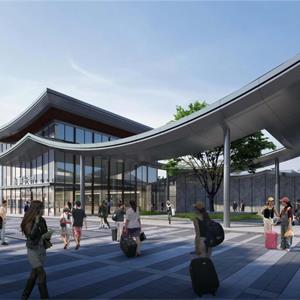 项目特色:项目包含公路客运站功能、酒店功能。依托崇仁古镇,文化底蕴深厚,蕴含着嵊州山水元素,历史文化条件优越。提炼崇仁古镇建筑屋顶元素,与建筑形体完美结合,体现地域浓厚的文化特色。室内设计采用现代、简洁的设计手法,以米白色系为主,室内空间与建筑屋顶形式结合,营造独特的候车空间。