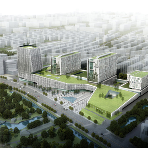 项目详情:本方案的设计理念中,对建筑占有的原地坪绿色自然空间进行有机解构、重组,结合不同的建筑体量,通过屋顶植被,竖向立体绿化,室内外庭院景观的交融,同时采用园林借景、对景的手法,引入植物园优美的风景,使医疗建筑空间与绿色景观再次编织成升腾而起的第二绿色地坪。贯穿于整个基地的绿色立体空间宛如一张巨大的悬浮城市绿毯,覆盖、穿行于城市建筑空间之中,与周边居住空间进行有机的对话和巧妙的融合。