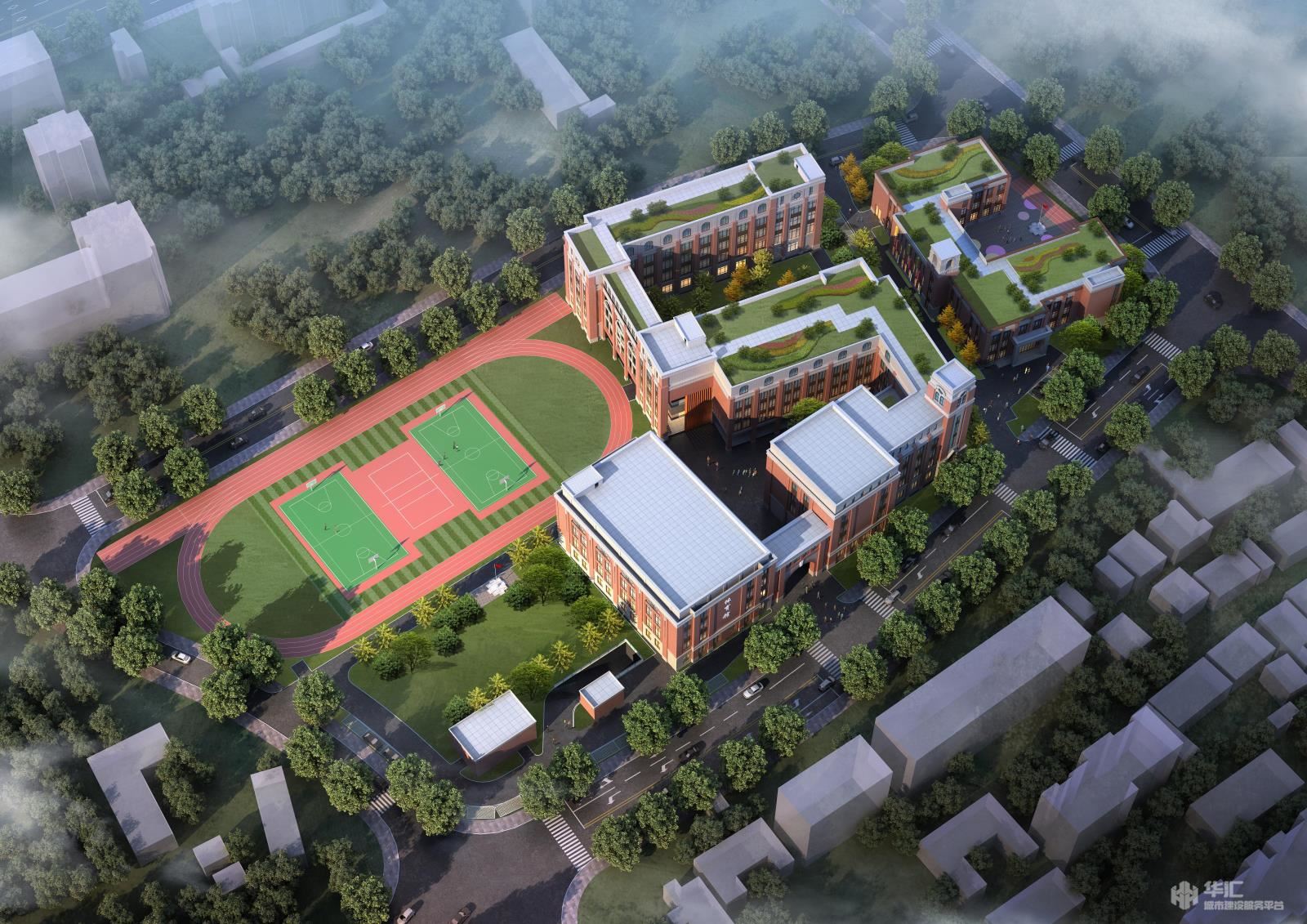 规划布局强调建筑与城市的共生,共同完善城市的功能和提升城市的环境资源。 校园东南侧的活动场地与城市绿地及景观河道相互渗透,最大限度地利用自然资源,形成城市核心区的景观资源。建筑考虑屋顶绿化、庭院绿化、多层次的活动空间,构建“灵活的、多样的、生态的”的校园环境。