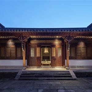 在单体设计中,我们保留了移建古建的原始状态—包括型制、材料、细部等,仅仅按照现在的功能要求,做了部分内部修改,使之即保持了原有的建筑魅力,又能满足当今的使用功能。在立面处理上也是“修旧如旧”,延续了中国特色古建的经典形式,白墙、青砖、黛瓦、石花窗等元素的运用,尽力保持古建的原始状态。