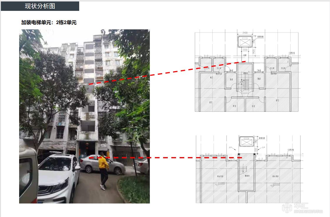 本工程位于射洪市阳湖家园 2 栋 2 单元,在楼梯外侧新增加装电梯工程,新增电梯占地面积 4.56 ㎡,总建筑面积 55.8 ㎡,提升高度 22.5m,基坑深度 1.5m,冲顶高度 4.5m,为无机房电梯。该电梯电梯开门楼层:1 层、4.5 层、6.5 层、7.5 层。