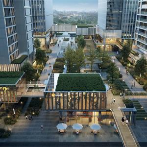 本项目集商务办公、居住生活、商业配套及服务配套等多功能的混 合多元社区,思考城市的开放多元的未来生活方式。因此,项目透过不同的空间来营造未来生活模式。