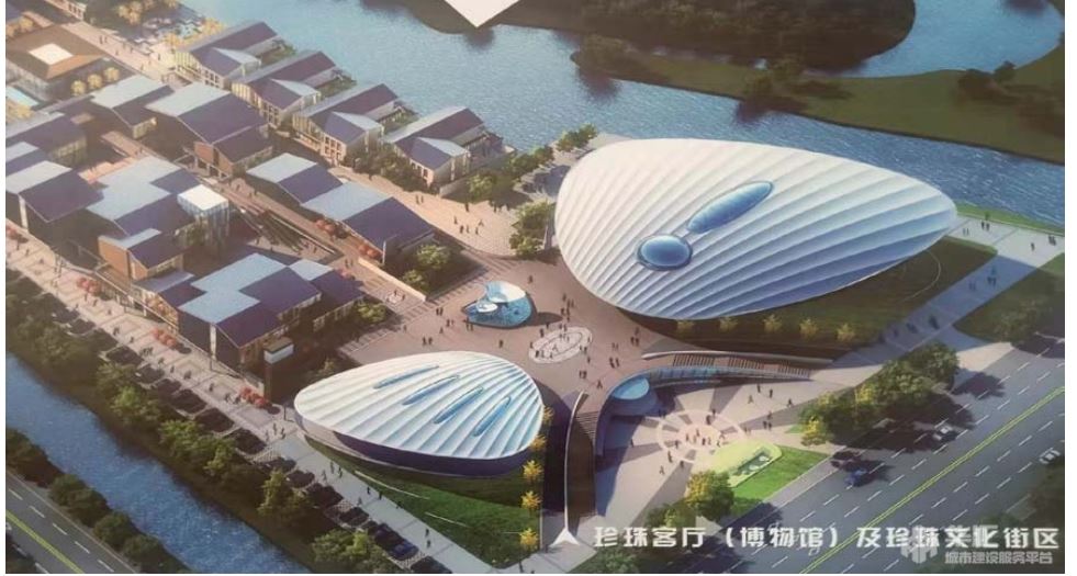 珍珠客厅(博物馆)及珍珠文化街区项目 EPC 总承包项目位于诸暨市山下湖镇,现华东国际珠宝城东侧,总建筑面积 46155.88m²,由 1 幢 4 层珍珠博物馆、1 幢 2 层会议中心、 2 幢 3 层创新工坊、9 幢 3 层精品商业、9 幢 2 层大师工坊及 1 幢 5 层休闲生活馆组成。