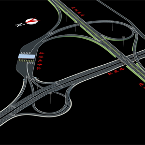 本项目属城市主干道()快捷路,采用主六辅六车道标准,设计车速 主线80km/h,辅路40km/h,全长 3739.4 米,规划宽度 60 米,由北向南分别与战备路、牛角冲路、侯家冲路、柳树塘路、时代阳光大道以及区域内的两条支路(仙岭路、黄梅冲路)和绕城高速 A 匝道相交,终点与县道047相交。