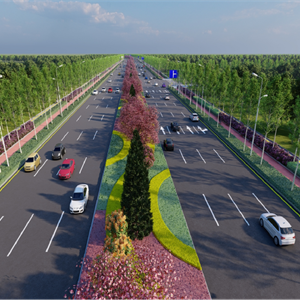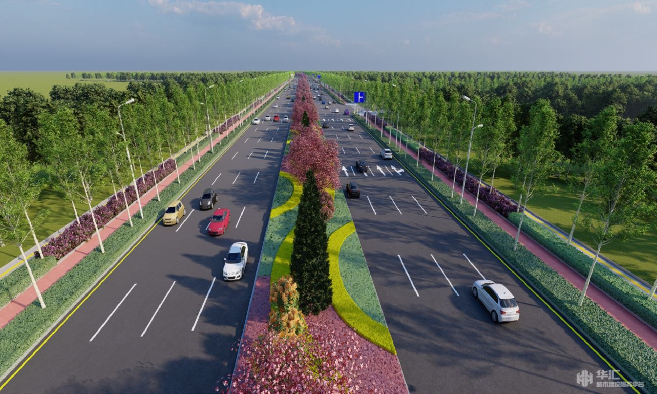 开发二十五号路一般标准段为:3m人行道+1.5m绿化带+3m非机动车道+2.5m绿化带+15m机动车道+10m绿化带+15m机动车道+2.5m绿化带+3m非机动车道+1.5m绿化带+3m人行道=60m,为双向8车道。