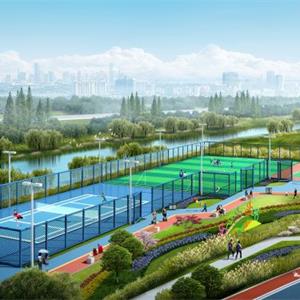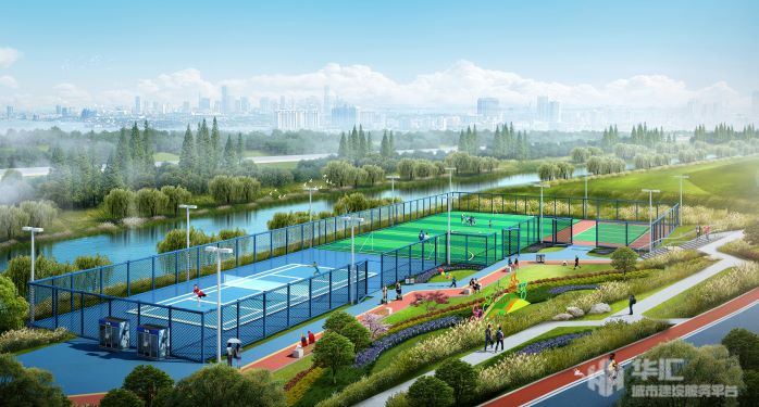 淮海西路至凤冠路河道两岸长约4公里景观带、宽5.5米绿道、体育公园等内容,规划蓝线15米。