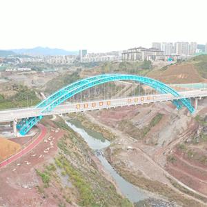 天关山路位于泰顺县罗阳镇中心城区以南,横跨在建的文祥湖水库,是联系主城中心区南部区间的东西向城市次干路。本次设计路段东起228省道,西至廊桥大道,设计速度30km/h,全长854米,宽26米,项目主要特点为文祥湖特大桥采用20m(矮T梁)+168m(中承式桁架钢管混凝土拱桥)+20m(矮T梁),主拱计算跨径168m,拱轴采用悬链线,漂浮体系,桥宽28m,桥梁总长226m。
