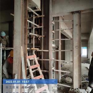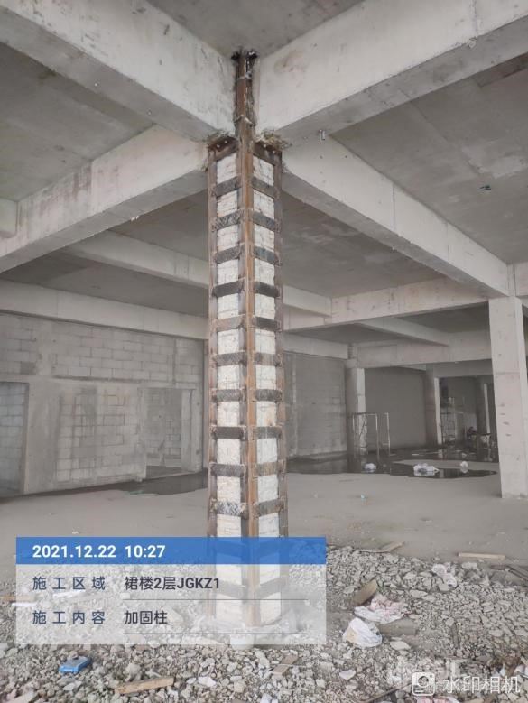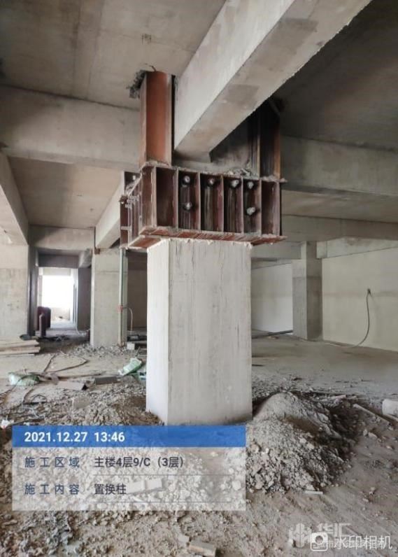本项目位于江苏省泰州市兴化市,该建筑主体楼层23层,建筑封顶后发现多处柱混凝土强度不能满足设计要求。该建筑柱构件截面大,柱子尺寸超过1米*1米,且出现问题的柱子位于建筑中部,处理困难。我司根据实际情况采用多种不同方案进行结构加固,综合采用整体置换、局部置换、包钢法等方法进行加固处理。整体项目仅耗时45天即完成加固工作,保证项目按计划竣工,减少经济损失三百万元以上,得到了主管单位及业主的好评。