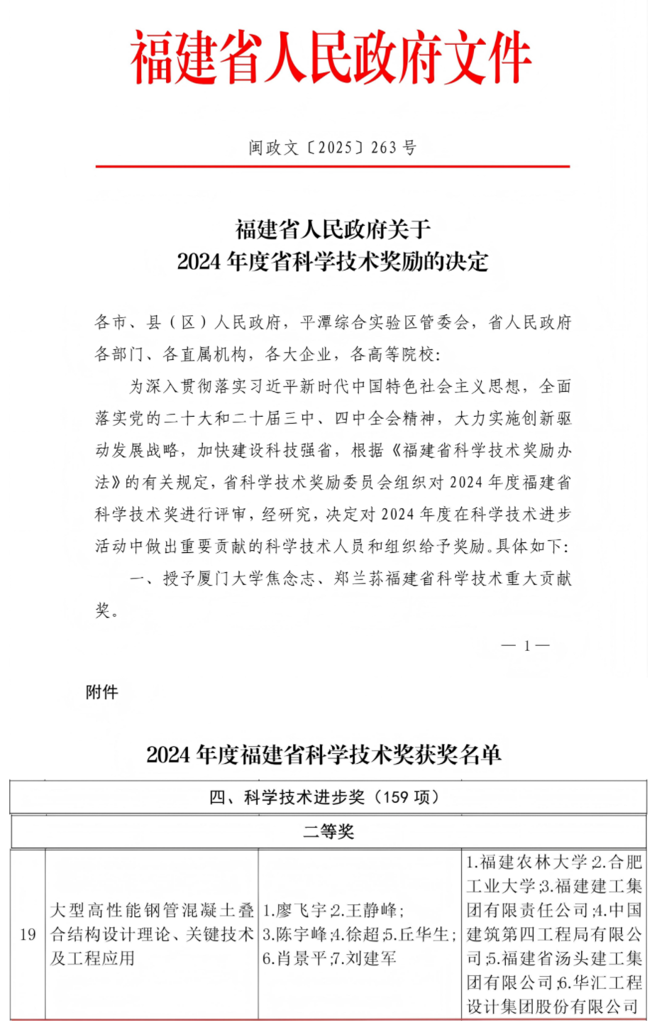 近日,福建省人民政府正式发布《关于2024年度省科学技术奖励的决定》,集团参与完成的“大型高性能钢管混凝土叠合结构设计理论、关键技术及工程应用”项目,凭借在结构工程领域的技术突破与实践成效,荣获福建省科学技术进步奖二等奖,彰显了在高端工程技术研发与应用方面…