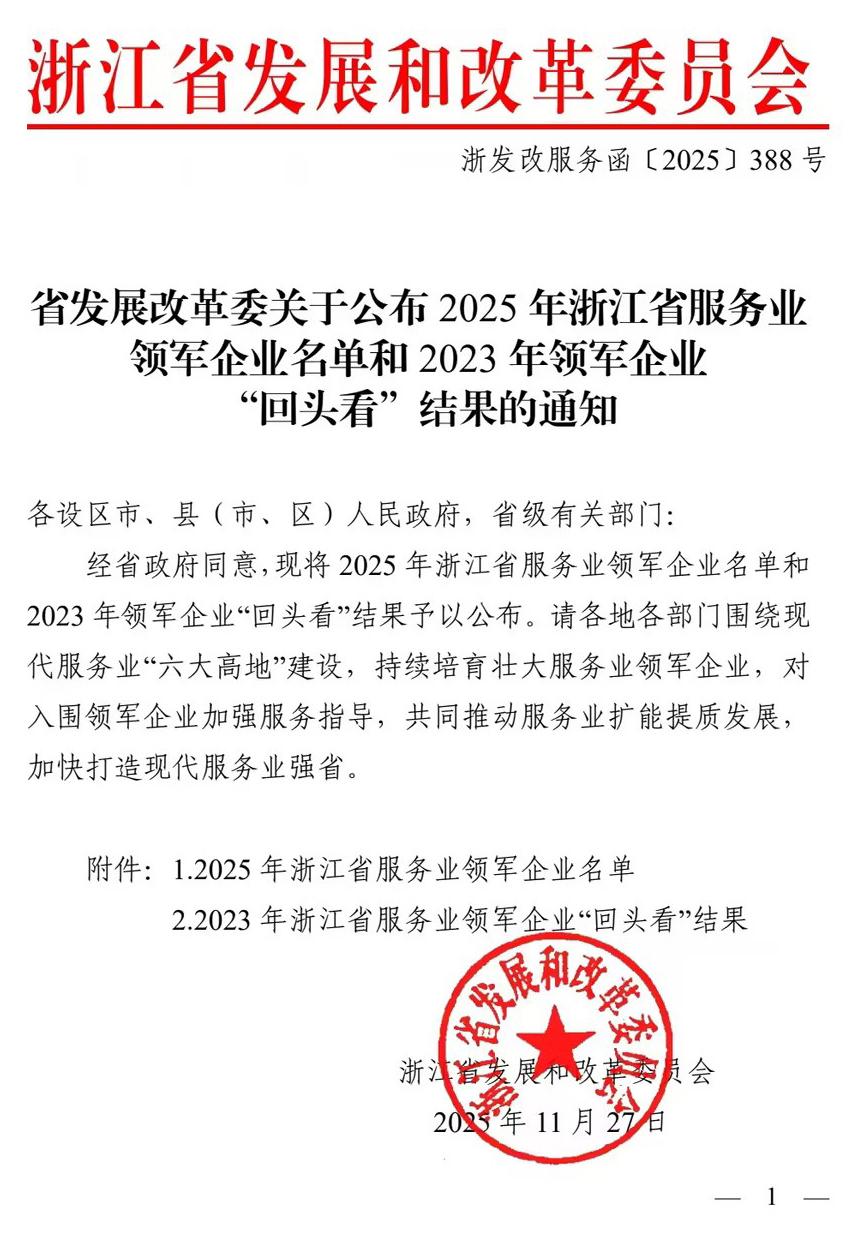 近日,浙江省发展改革委牵头组织的 2025 年服务业领军企业认定结果正式公布,全省198家企业脱颖而出,覆盖服务业“六大高地”的34个细分领域。集团凭借在科技服务业领域的卓越贡献与行业引领力成功入选,成为绍兴市该类别中唯一上榜企业,迈入全省服务业核心骨干阵列。何…