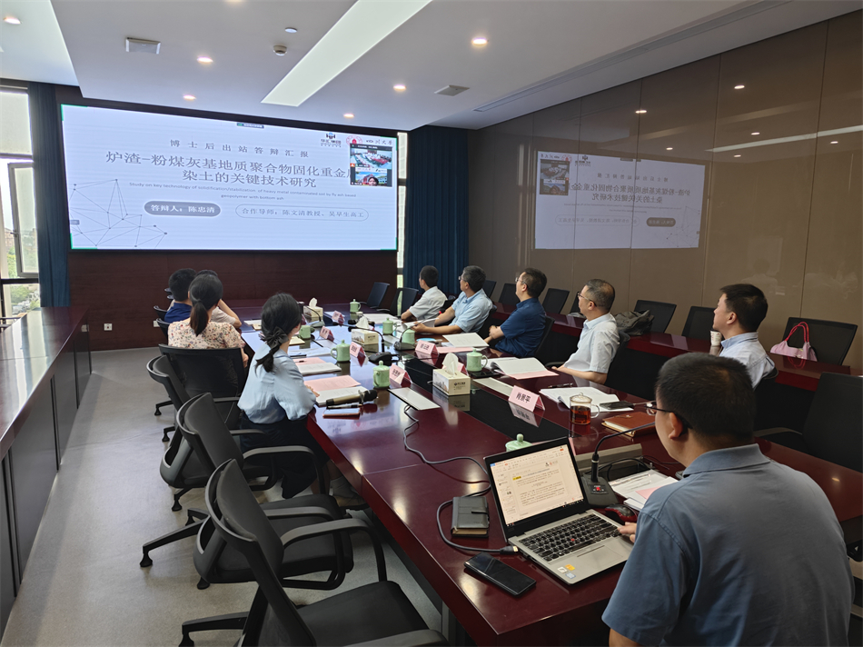 会上,陈忠清就博士后课题“炉渣-粉煤灰基地质聚合物固化重金属污染土的关键技术研究”成果作了详细报告。博士后团队通过本课题研究,得到了炉渣掺量、碱激发剂掺量、水玻璃模数和水固比等参数对炉渣-粉煤灰基地质聚合物强度的影响规律;弄清了铜、镍、铅等不同重金属掺量、固化剂掺量及养护龄期对炉渣-粉煤灰基地质聚合物对重金属污染土固化效果的影响,获得了重金属污染土固化体的强度特性与淋滤特性;通过SEM、XRD、XPS等测试结果分析揭示了炉渣-粉煤灰基地质聚合物固化铜、镍、铅等重金属污染土的微观机理。在站期间,陈忠清博士后在四川大学教授陈文清和集团副总裁吴早生指导下,主持完成了一项中国博士后科学基金项目,发表SCI及核心学术论文4篇,获专利授权2件。