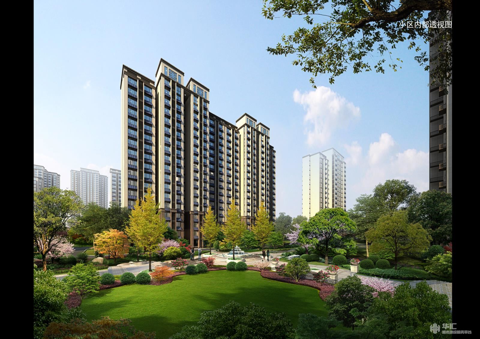 “多组团”:沿立人路公共服务及商业组团,以及由小区主环线及景观轴线分割的两个主要居住组团和多个附属组团。组团之间通过景观绿色长廊串联成一个整体,既具有一定的私密性,景观上又相互渗透,形成不同的空间形态。每个组团都有一个亲切怡人的交往场所核心,一个供住户随时休息、娱乐的可亲、可近、可识别的场所。