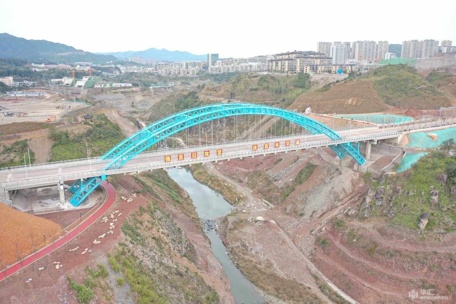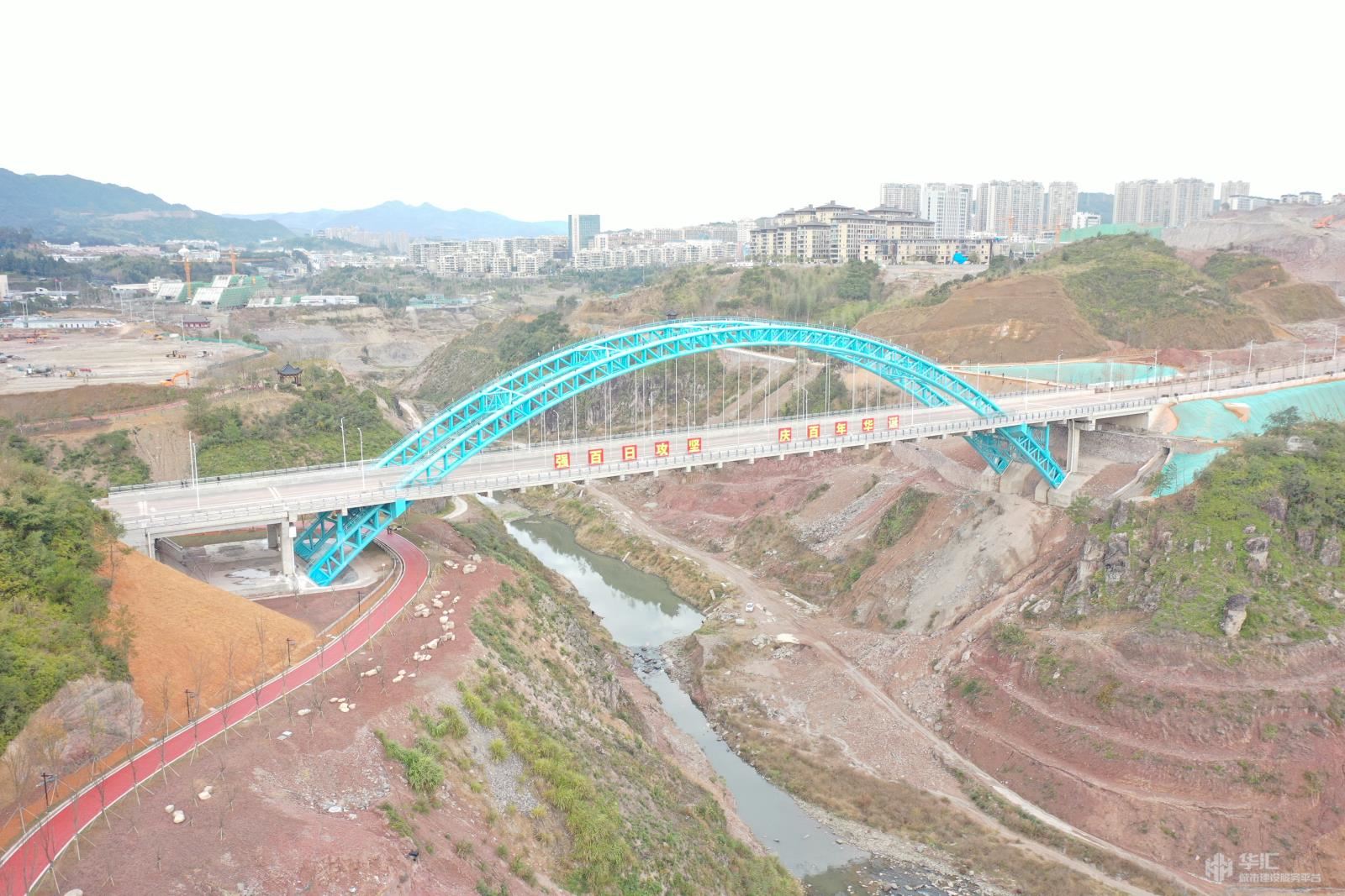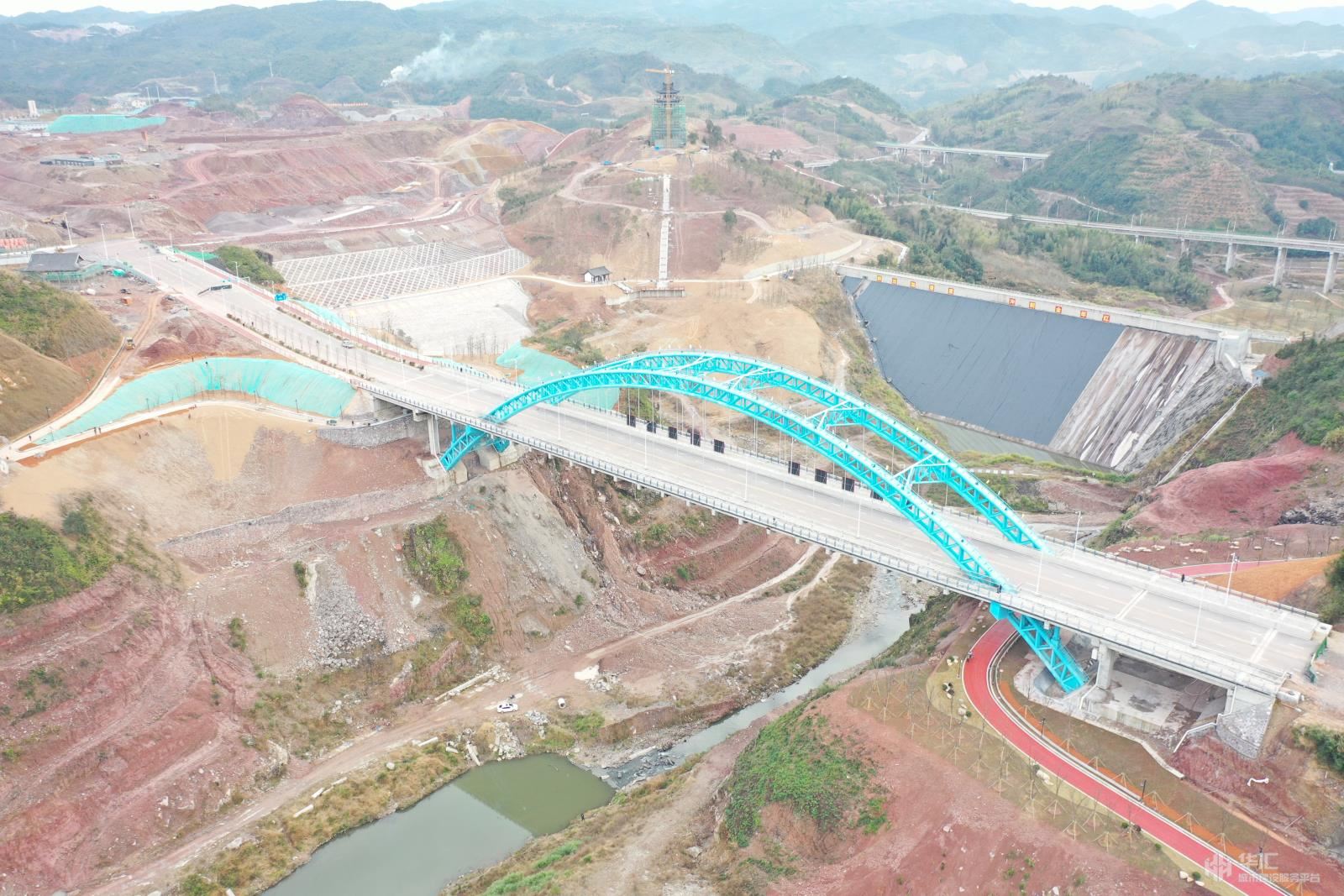 天关山路位于泰顺县罗阳镇中心城区以南,横跨在建的文祥湖水库,是联系主城中心区南部区间的东西向城市次干路。本次设计路段东起228省道,西至廊桥大道,设计速度30km/h,全长854米,宽26米,项目主要特点为文祥湖特大桥采用20m(T)168m(中承式桁架钢管混凝土拱桥)+20m(T),主拱计算跨径168m,拱轴采用悬链线,漂浮体系,桥宽28m,桥梁总长226m